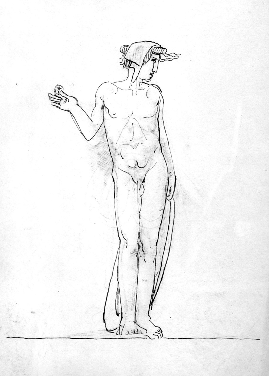 figura maschile nuda con un copricapo all'antica, recto// la stessa figura con un panno ai fianchi, verso