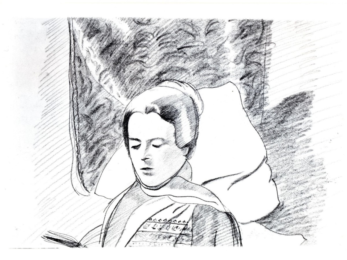 ritratto di Anna Banti con la sciarpa, mentre legge (disegno)