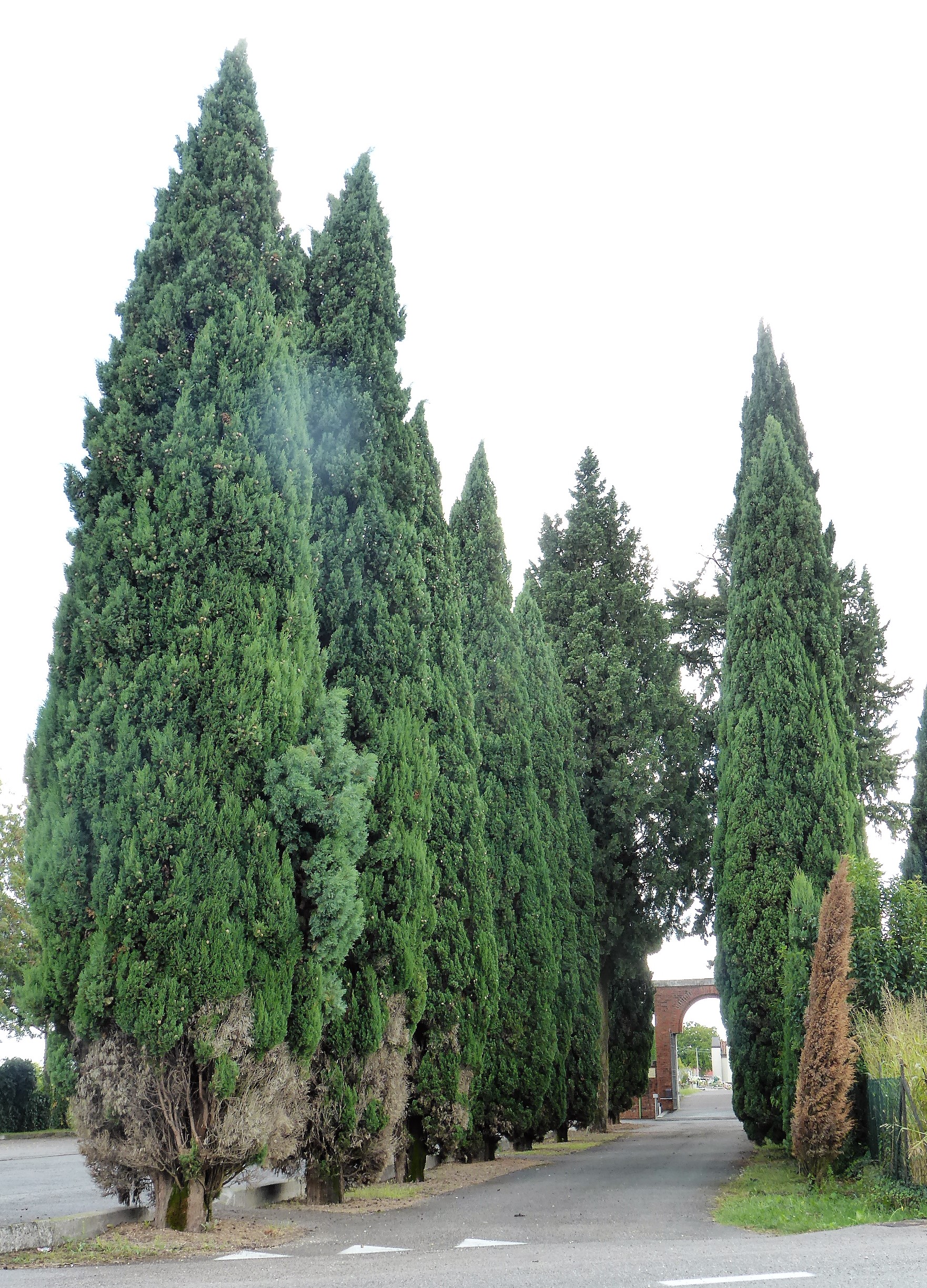 impianto: longitudinale esemplari di rilievo: CUPRESSACEAE/ Cupressus/ C. sempervirens piramidalis L./ Arb./ N.19/ cipresso, ai lati
