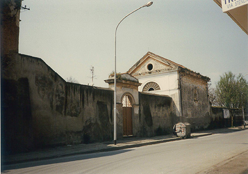 strutture verticali: parete (in muratura continua, tufo), intero bene; strutture di orizzontamento: volta (a botte a sesto ribassato affrescata, intera volta muratura), intero bene; scale: rampa (d'accesso (esterno) rettilinea, pietra serena), esterna; pavimenti: in maiolica vietrese a motivi geometrici, intero bene; elementi decorativi: lunetta semicircolare (ferro// vetro), prospetto principale, esterna; isrizioni, lapidi, stemmi: lapide (incisa/o, marmo di Carrara), prospetto secondario
