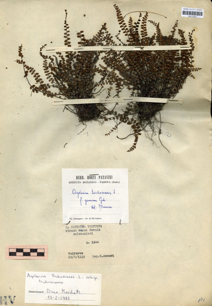 Asplenium trichomanes L. f.genuinum Godr. - erbario, Erbario delle Tre Venezie, Erbario delle Tre Venezie
