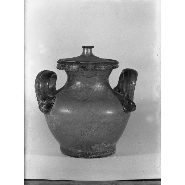 Dal Ravennate, Anfora in vetro verde con coperchio, usato per ossuario, cat. n. 1