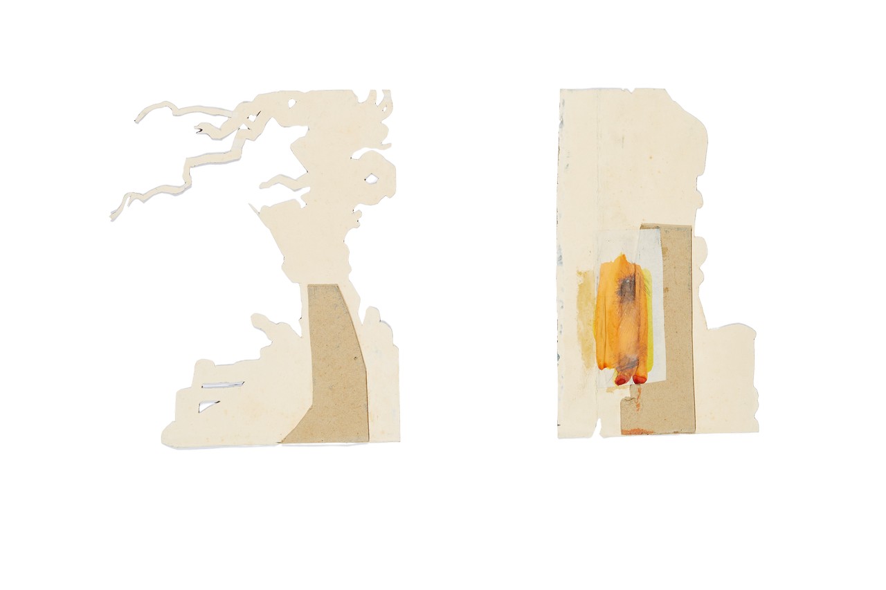Elemento smontabile del bozzetto per l'ultima scena del dramma John Gabriel Borkman, dipinto con tempera ad acqua su uno spesso cartoncino marrone e ritagliato. Vi sono rappresentati un albero secco dai lunghi rami e una panchina, coperti dalla neve.. Albero, panchina, neve