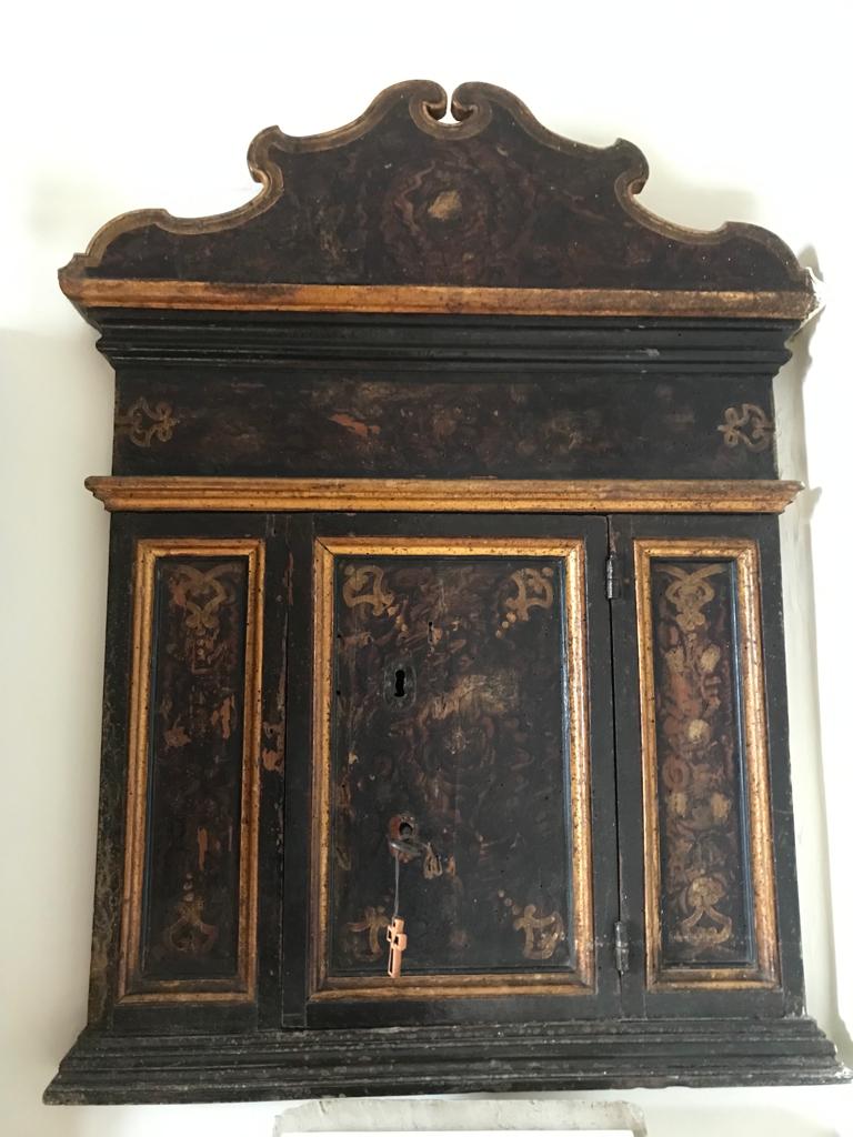 Coppia di tabernacoli con modanature dorate e decorazione sommitale sagomata.. soggetto assente