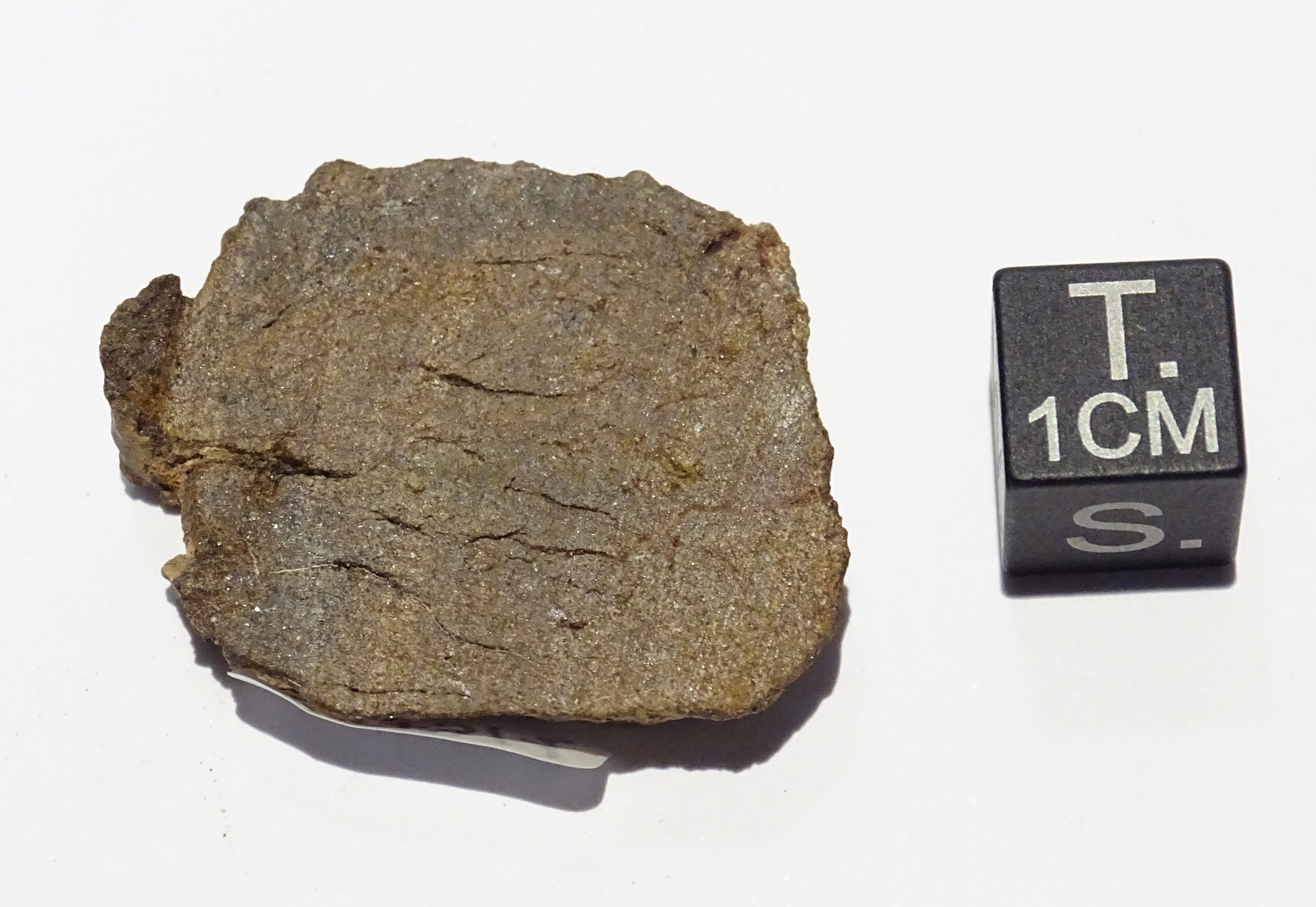 Northwest Africa 6542 , Chondrite , Enstatite , EL .Una fetta privo di crosta di fusione. località di raccolta - dati aggiornati: Africa