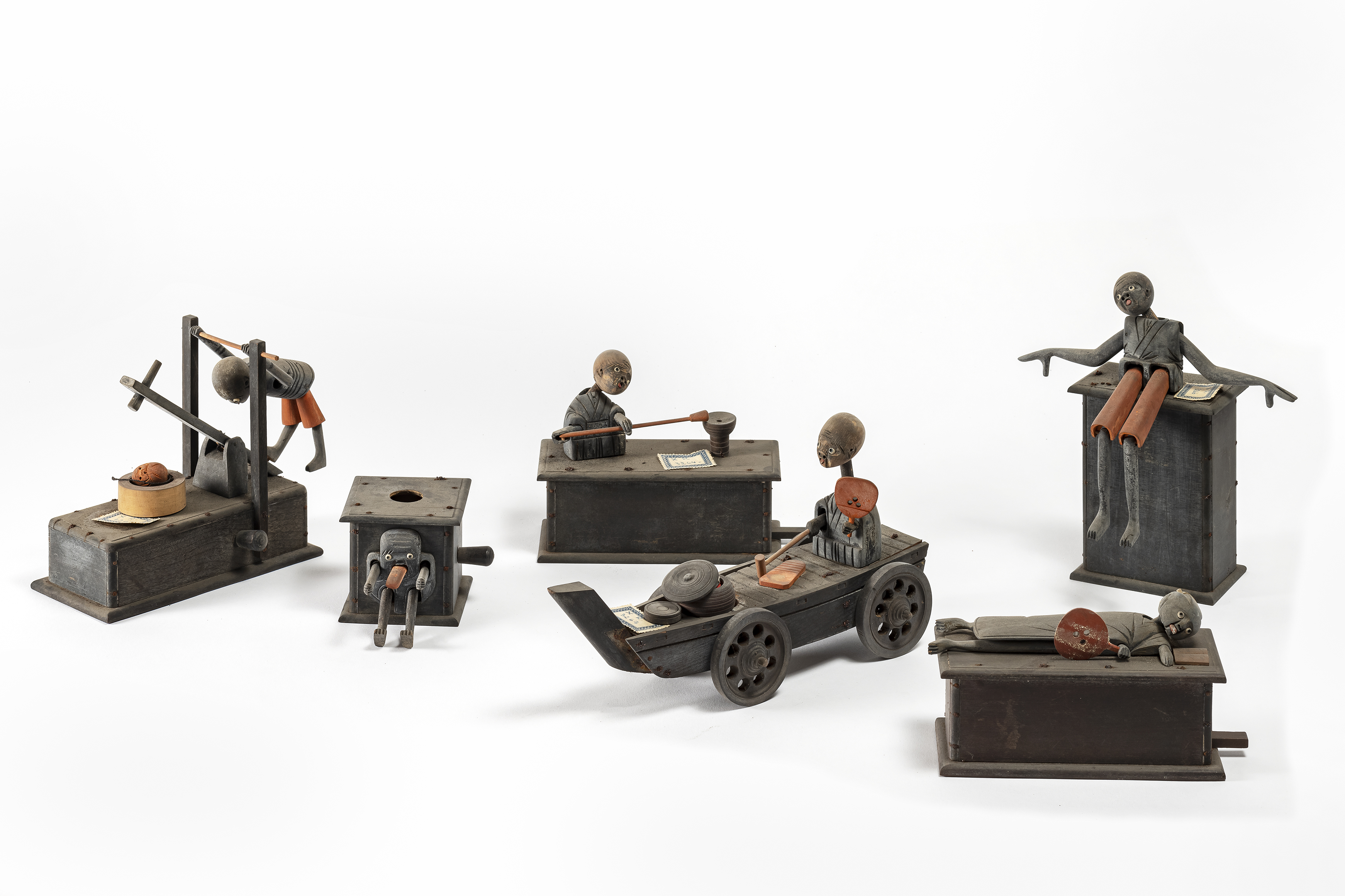 Nucleo di 14 bambole meccanizzate giapponesi (karakuri) del genere chiamato Bambole di Kobe (Kōbe ningyō), di cui 1 del tipo "in piedi", due "su ruote" e 11 "su box". Azionando i meccanismi interni tramite leve, le figure si muovono dando vita a forme e pose grottesche e bizzarre.. I personaggi traggono ispirazione dagli esseri soprannaturali (yōkai) e dai fantasmi giapponesi (yūrei), colti in attività artigianali e culturali tipiche del periodo Meiji