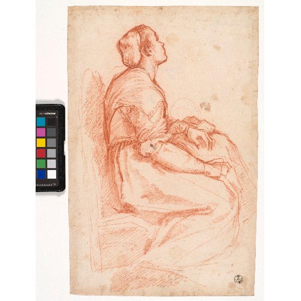 Studio di giovane donna seduta di profilo a destra (disegno)