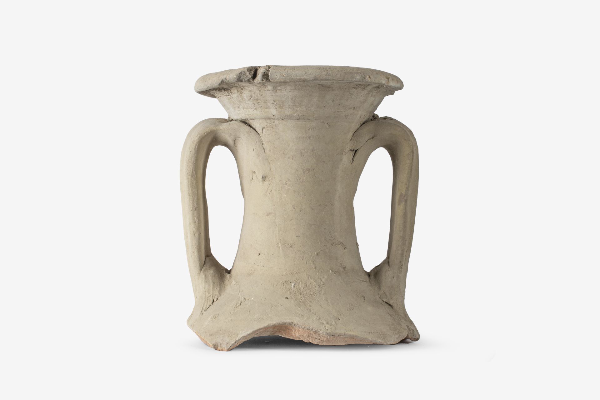 Bocca ampia con basso orlo distinto estroflesso, collo cilindrico con leggera risega con l'attacco con la bocca, spalla attotondata. Larghe anse a nastro con solcature pronunciate, impostate sotto l’orlo e sulla spalla.