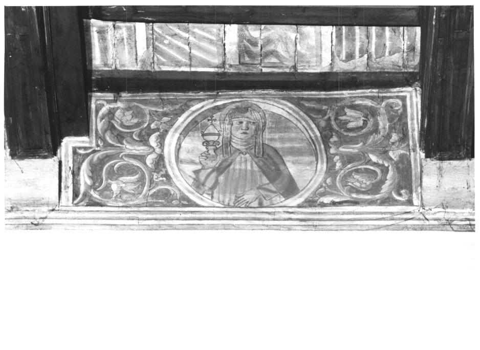 santa monaca francescana in clipeo che regge una pisside/ Motivi de corativi a girali vegetali (dipinto)