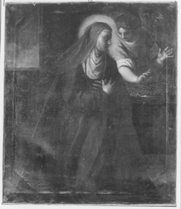 Oggetti: paniere; corona del rosario. Figure: angelo