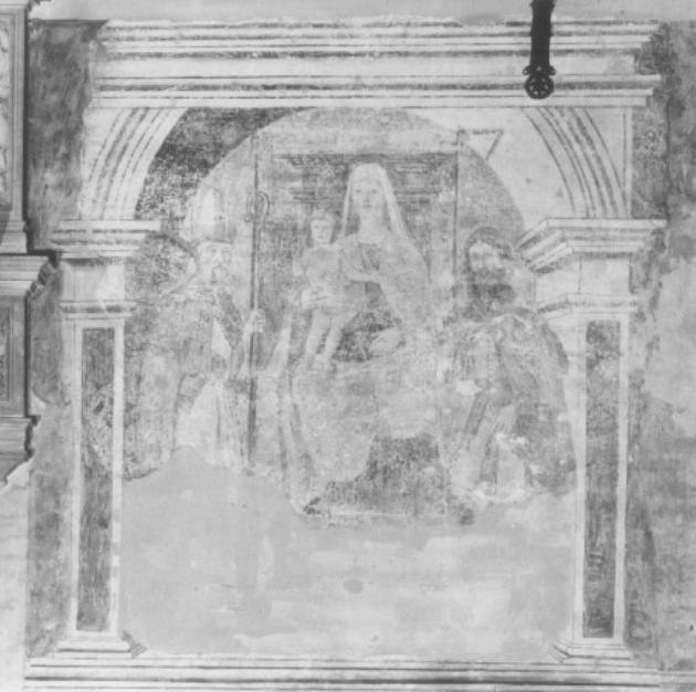 Personaggi: Madonna; gesù Bambino; San Rocco; Santo Vescovo. Architetture: nicchia architettonica