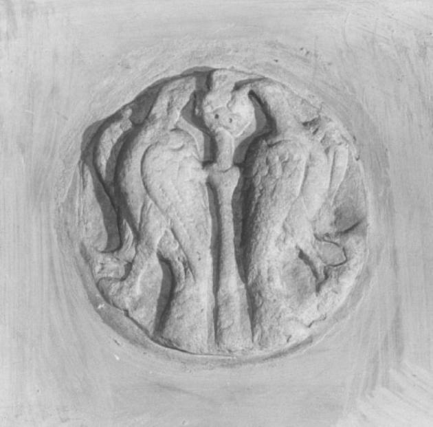 patera con colombe che si abbeverano ad una fonte (rilievo)