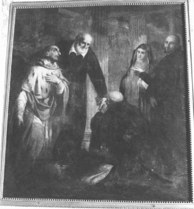 Rossa la veste del S. Carlo, in armellino - San Filippo Neri e i SS. Carlo Borromeo e Caterina de' Ricci con un frate (?) e un altro prelato -