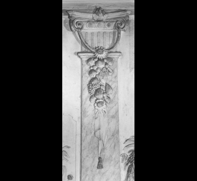 Vegetali: margherita; frutti; girasole; uva. Oggetti: drappo. Elementi architettonici: capitello composito jonico. Decorazioni: motivi a ovoli