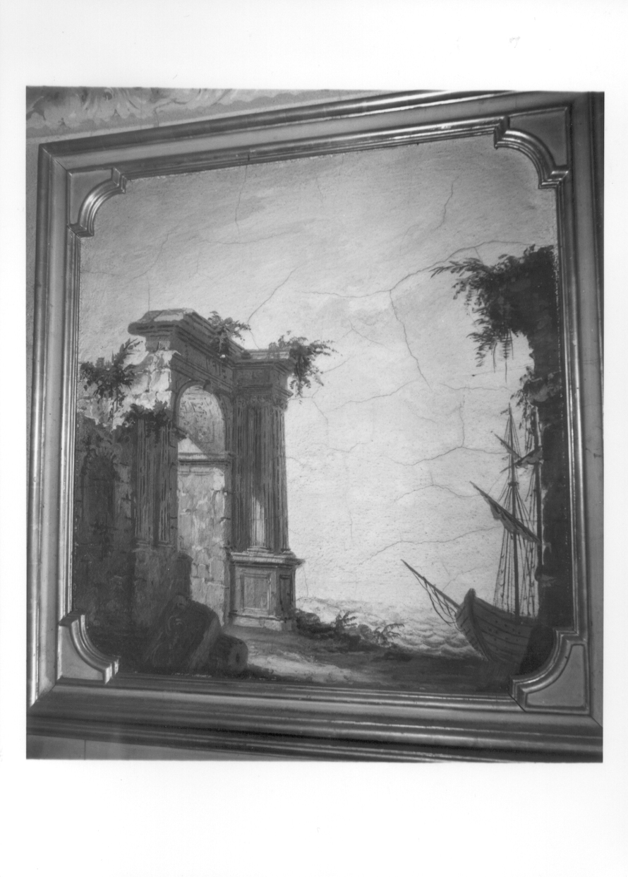 Sovrapporta dipinta con rovine architettoniche.. Reperti archeologici