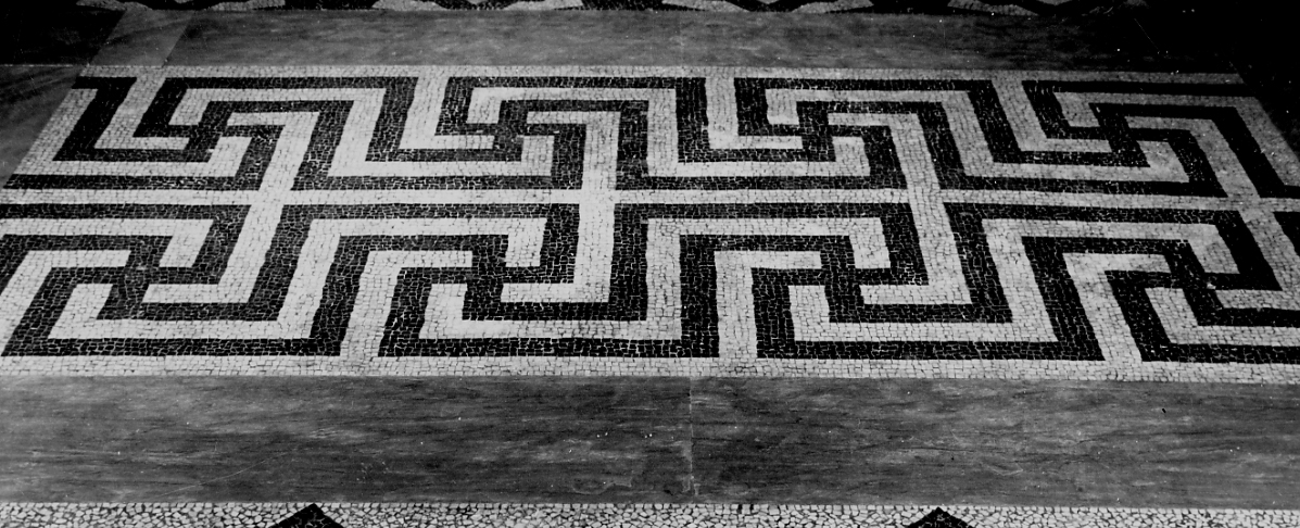 marmo bianco di Carrara/ mosaico; marmo nero di Oira/ mosaico