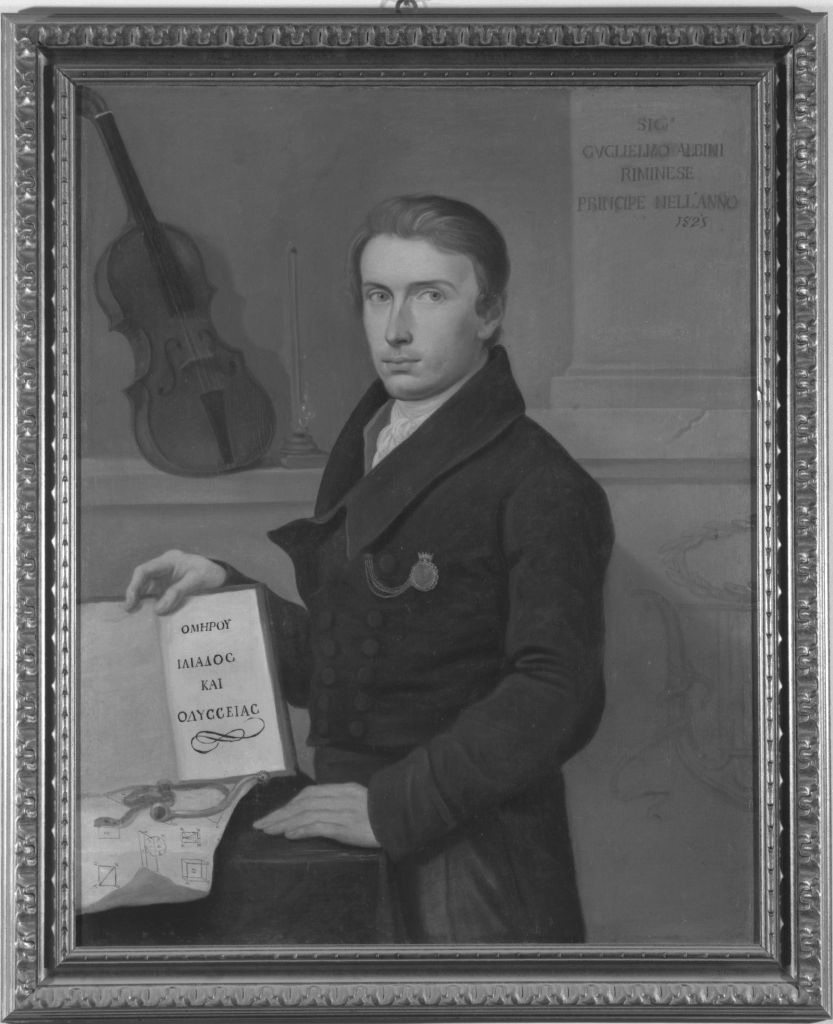 Ritratti: Guglielmo Albini. Oggetti: libro; violino.