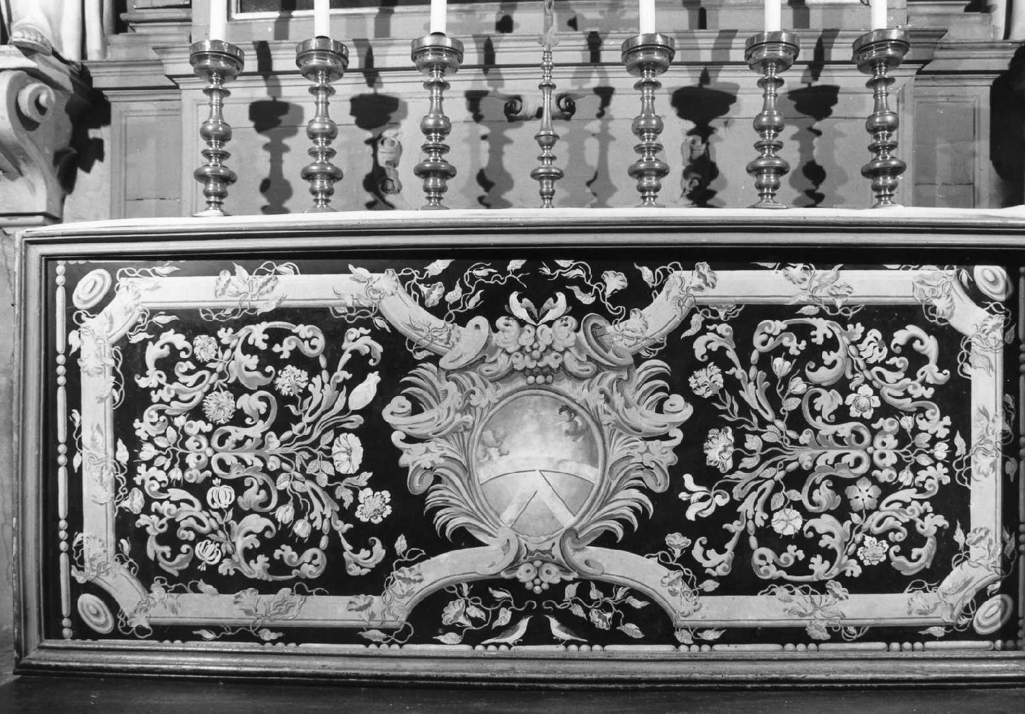 motivi decorativi vegetali; stemma gentilizio (paliotto)