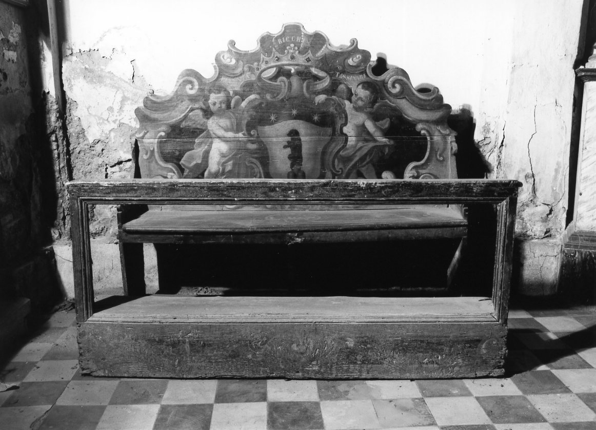 putti reggenti stemma Tassinari (banco da chiesa, elemento d'insieme)