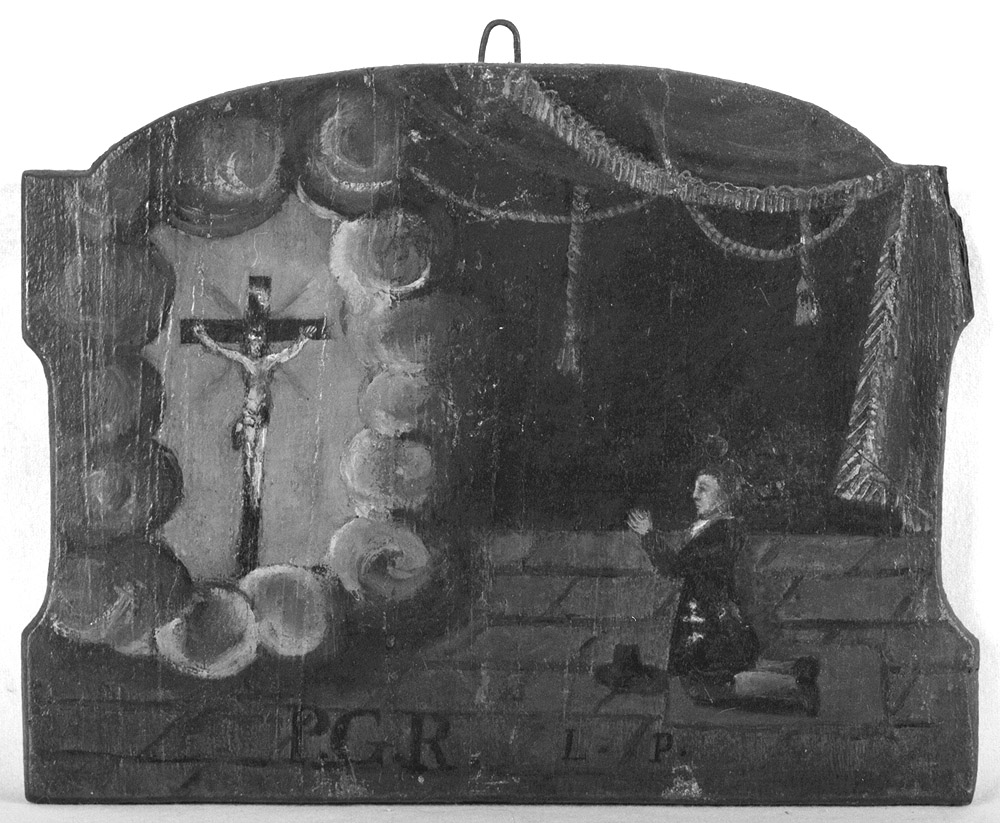 Uomo inginocchiato davanti al Crocifisso (ex voto)