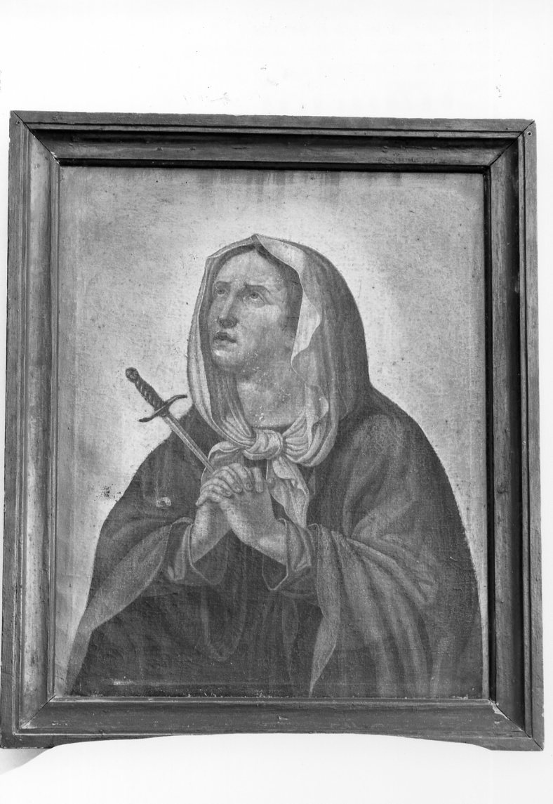 Sant'Eufemia a mezzo busto, con le mani giunte e il petto trafitto.