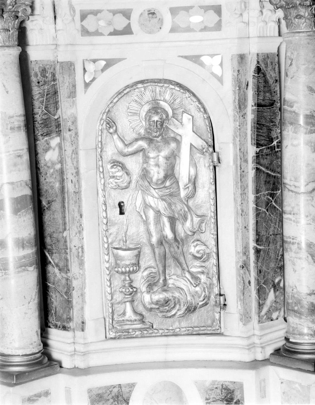 Gesù risorto versa il sangue nel calice sorretto da un angelo (sportello di tabernacolo)