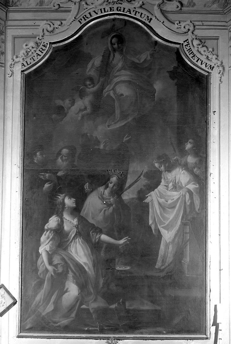 Le sante Caterina, Lucia, Agata, Apollonia, tre santi Agostiniani e la Fede (pala d'altare)