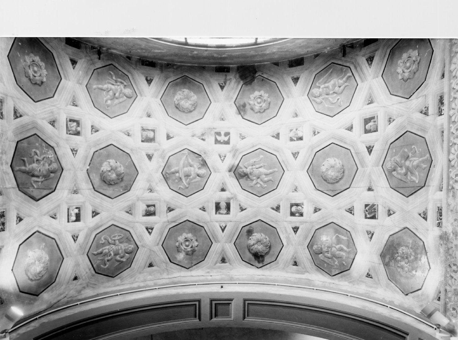 putti e motivi decorativi entro ottagoni; simboli dei quattro evangelisti; profeti e sibille; Colomba dello Spirito Santo