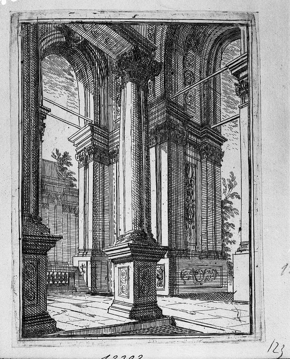 Buffagnotti Carlo Antonio; Buffagnotti Carlo Antonio, Prospettiva interna di un loggiato (stampa)