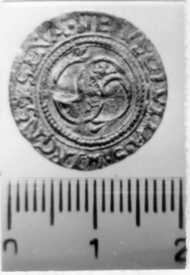 diritto: grande S fogliata e decorata. Contorno rigato fra due lineari. rovescio: croce fogliata,contorno rigato fra due lineari che si aprono sul segno e lo circondano