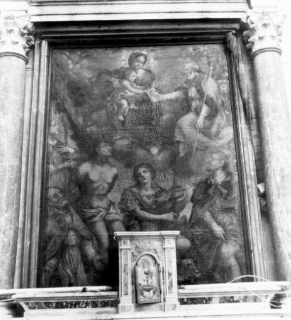 Madonna con Bambino in gloria, Santo papa, Santa Lucia, San Sebastiano, San Genesio, San Rocco e Santo vescovo