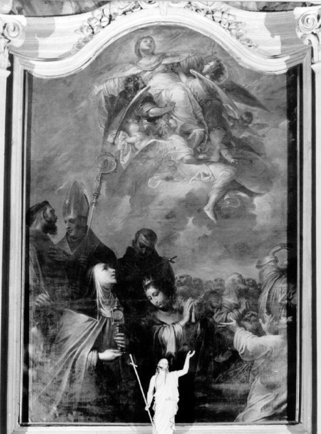 assunzione della Madonna con Santa Chiara, Santa Caterina d'Alessandria, San Francesco d'Assisi, San Ludovico di Tolosa e Santo francescano