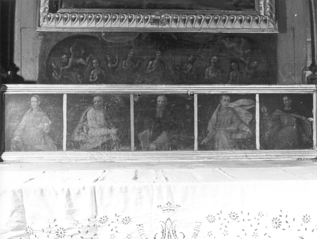 predella dipinta suddivisa in sette formelle di cui due nei plinti laterali.