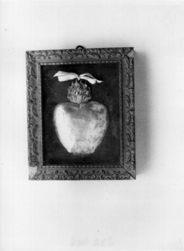 Ex-voto in argento sbalzato e inciso, entro cornice lignea