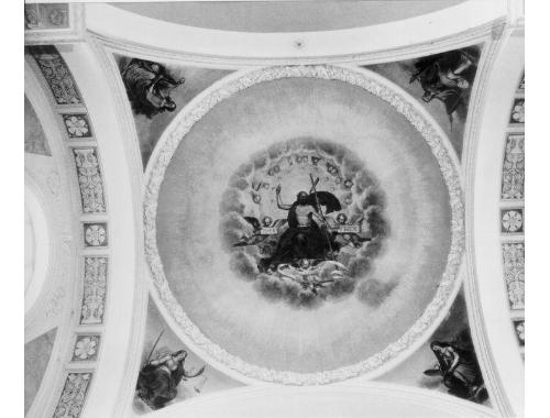 Personaggi: Cristo; (nei pennacchi) Virtù Cardinali. Figure: Angeli. Attributi:(Cristo) croce; (Angeli) cartigli