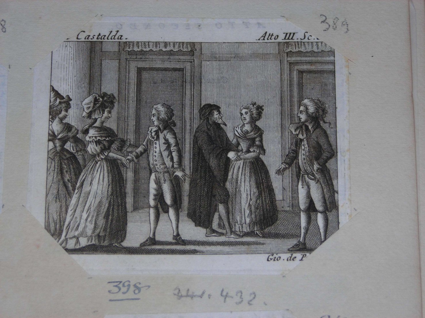 Interno. Figure maschili: gentiluomo; Pantalone. Figure femminili: dame