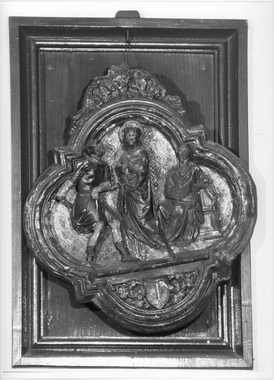 Cornice: quadrilobata con fregio apicale. Nel lobo inferiore: girali di foglie.. Personaggi: Cristo; Pilato. Figure: carnefice. Oggetti: trono