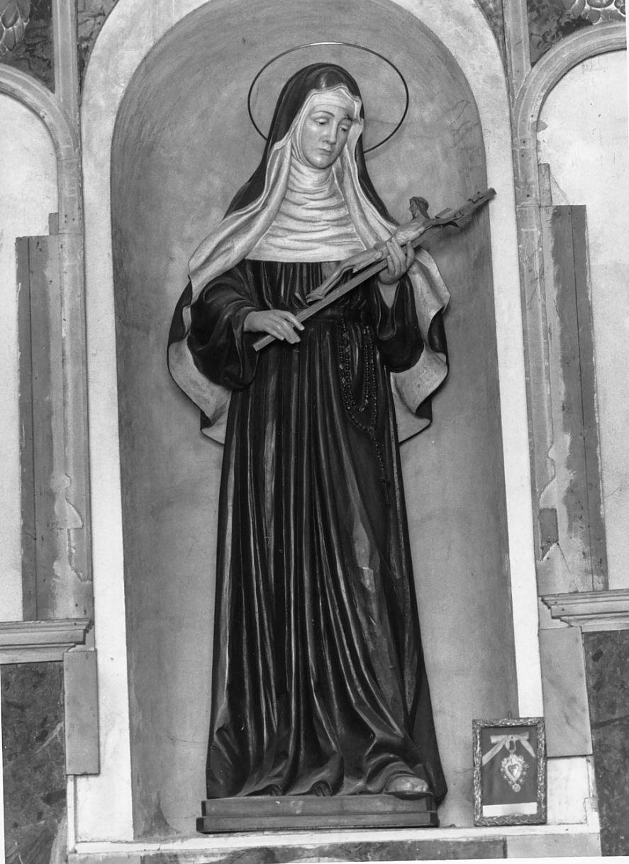 Personaggi: Santa Rita. Attributi: (Santa Rita) chiodo sulla fronte; corona del rosario alla cintola; abito domenicano; crocifisso