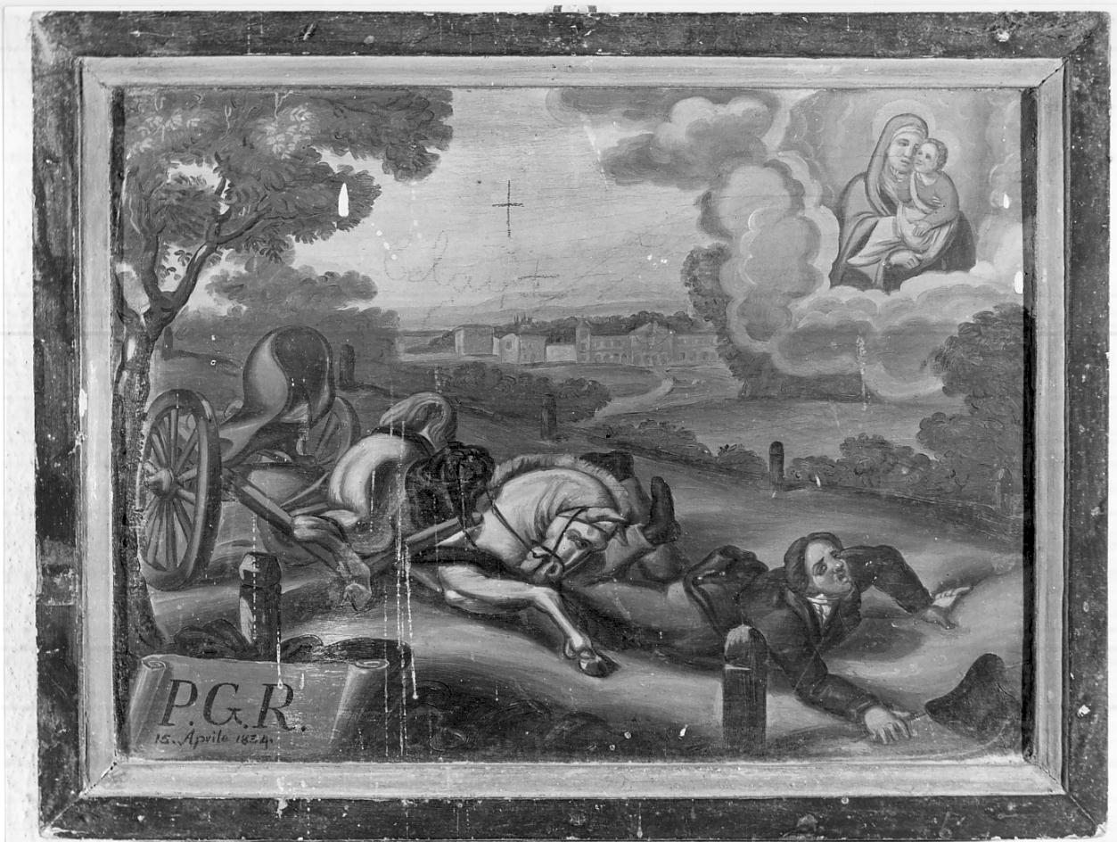la Vergine soccorre un giovane caduto da un carrozzino (ex voto, opera isolata)