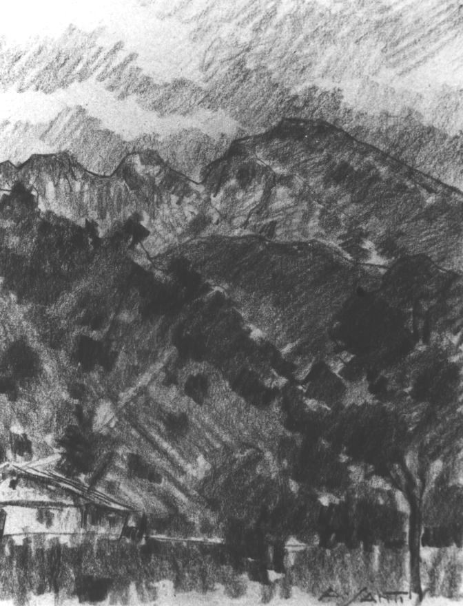 Verso Limone, paesaggio montano (disegno)