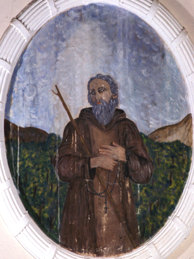 Personaggi: Beato Ugolino Magalotti. Abbigliamento religioso: saio. Oggetti: bastone; rosario. Paesaggi: cielo; vegetazione