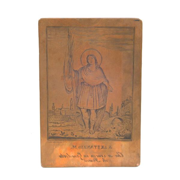 Matrice di stampa.. Soggetti sacri. Personaggi: San Lattanzio. Oggetti: stendardo. Paesaggi