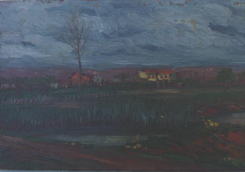 Paesaggi: campi; laghi. Piante: alberi. Architetture: casolari