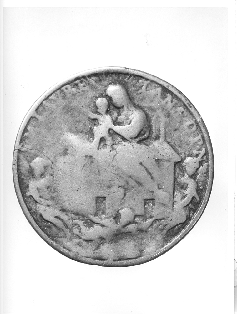 Medaglia di forma rotonda raffigurante sul dritto la Cappella lauretana sorretta da due angeli in volo tra nubi, con, al di sopra, il consueto gruppo della Madonna e il Bambino con capi raggiati e sul rovescio il busto di papa Pio V, di profilo a sinistra.