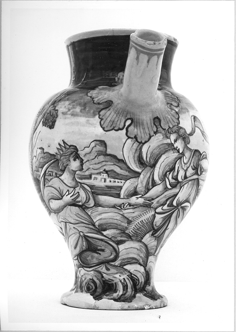 Brocca con boccaglio e manico.. Personaggi: Alcione; Giunone. Paesaggi: montuoso; lacustre. Architetture fantastiche