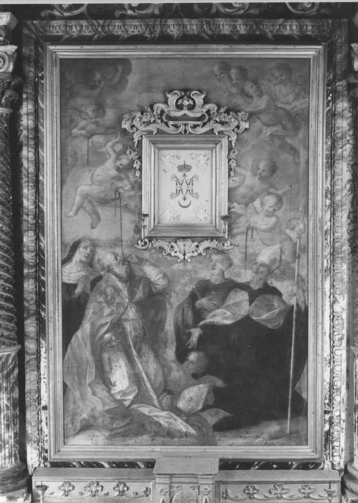 Personaggi: Santa Monica; Sant'Agostino; San Nicola da Tolentino; San Nicola di Bari. Figure: angeli. Attributi: (Sant'Agostino) mitria