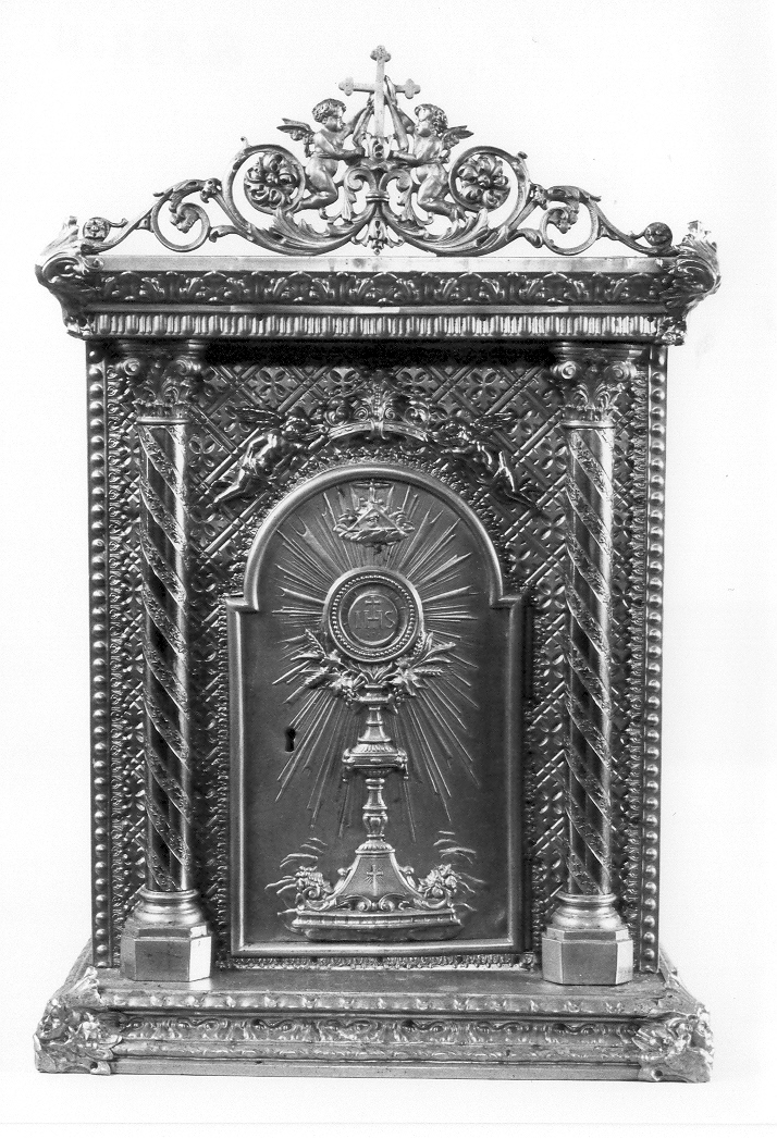 Tabernacolo dell'altare maggiore.. Figure: Angeli. Oggetti: calice eucaristico; ostia. Decorazioni: motivi floreali