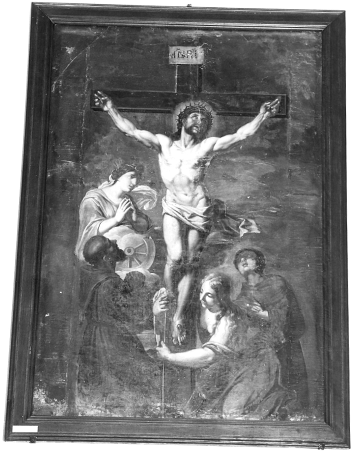 Cristo Crocifisso con Santa Caterina d'Alessandria, Santa Maria Maddalena e due Santi francescani. (dipinto)