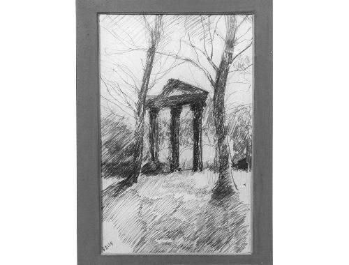 Paesaggio con tempio e alberi (disegno, opera isolata)