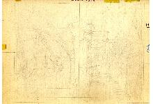 Disegno parzialmente incompiuto. Ampio salone con arcate ogivali; al cui interno si dispongono scudi; armature e stendardi.